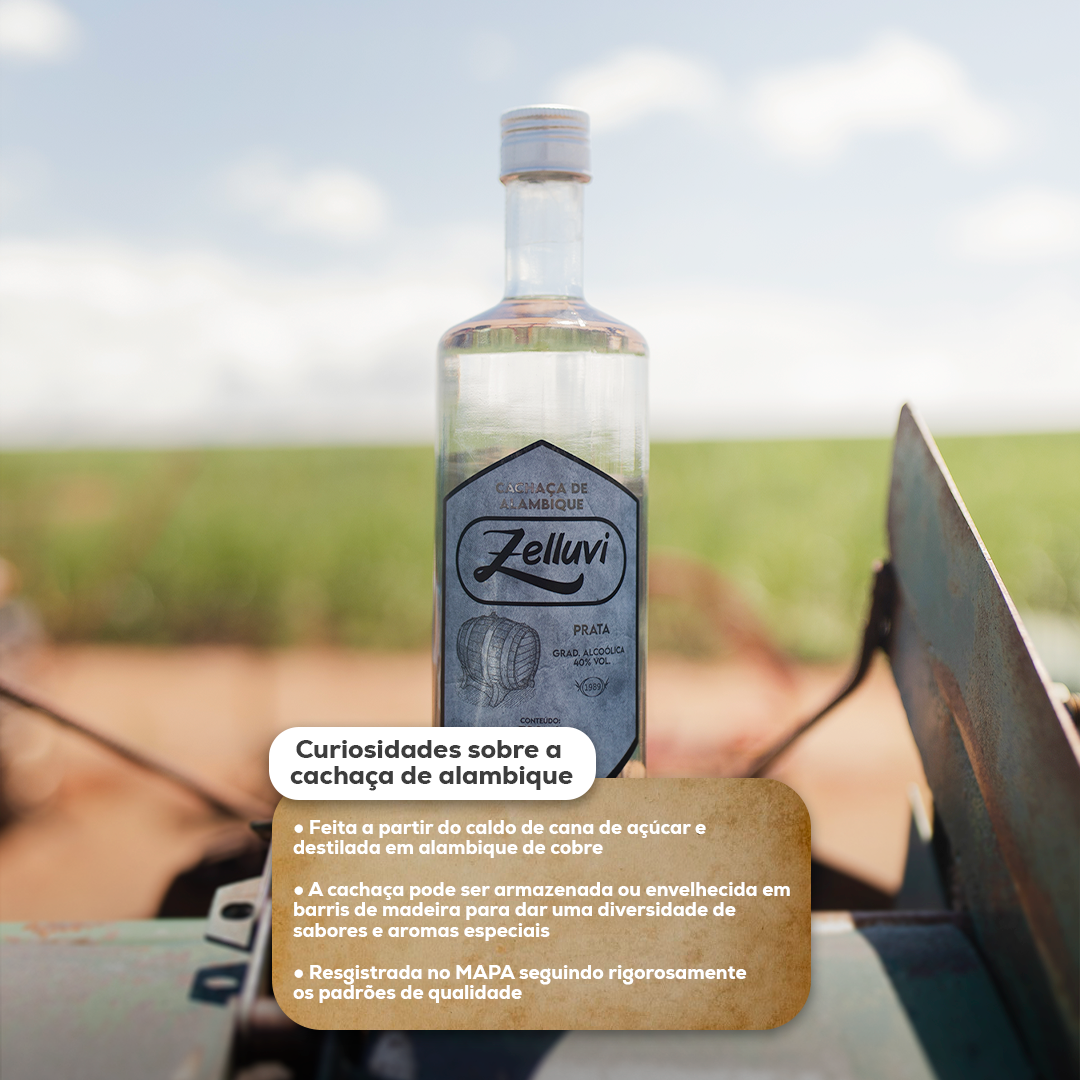 Há 36 anos, a Cachaça Zelluvi é produzida com excelência na Destilaria Zanuto, em Itumbiara, Goiás. Utilizamos matéria-prima própria, com rigoroso controle de qualidade, e alambiques de cobre para garantir o sabor único.